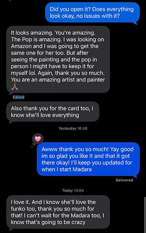 Hi everyone! My name is Chloe! I'm 23 years old and from Florida. Art has always been a passion of mine. From a young age, I enjoyed arts and crafts, and as I got older, I realized how much I love to paint. I've loved anime since my friend introduced it to me in 5th grade. Spirited Away was the first anime film I watched. From then on my love for anime grew. I wanted to put my two favorite things together into one. I will soon be attending school to become a Diagnostic Medical Sonographer specializing in OBGYN. I am selling my paintings to help pay for school and be able to share my artwork with the world!